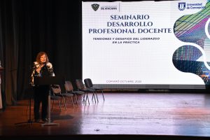 Durante el seminario se realizó además el lanzamiento del libro “Desarrollo Profesional Docente y Liderazgo Educativo en Chile”, publicación que reúne el trabajo colaborativo de académicas y académicos de distintas universidades del país. El texto, estructurado en tres partes, aborda desde las políticas de desarrollo profesional docente hasta las prácticas concretas de liderazgo pedagógico implementadas en establecimientos educativos. Nuestra casa de estudios participó activamente en la elaboración del tercer capítulo, donde se presentan experiencias y reflexiones sobre liderazgo y formación desde la propia realidad universitaria y territorial.