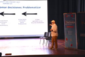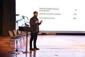 El académico de la Universidad de Concepción, Jorge Rojas, presentó los resultados de la línea base aplicada en los SLEP Atacama y Huasco: “Nosotros contamos con una medición que nos va a dar cuenta detalladamente de cómo son las prácticas al interior de la escuela y dentro del territorio. Podemos focalizar, detectar nudos, tensiones de las prácticas que más y menos se despliegan dentro del territorio.”