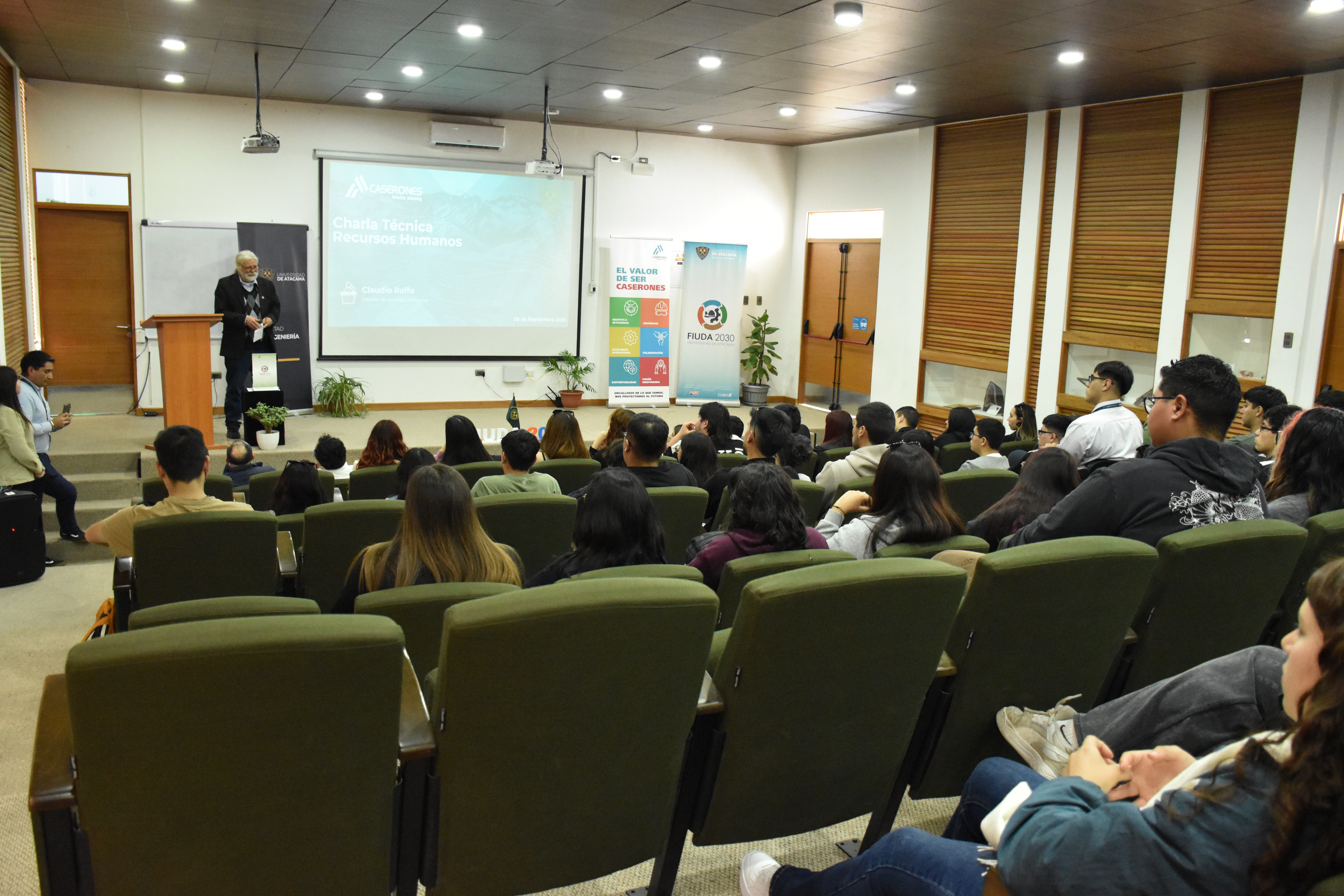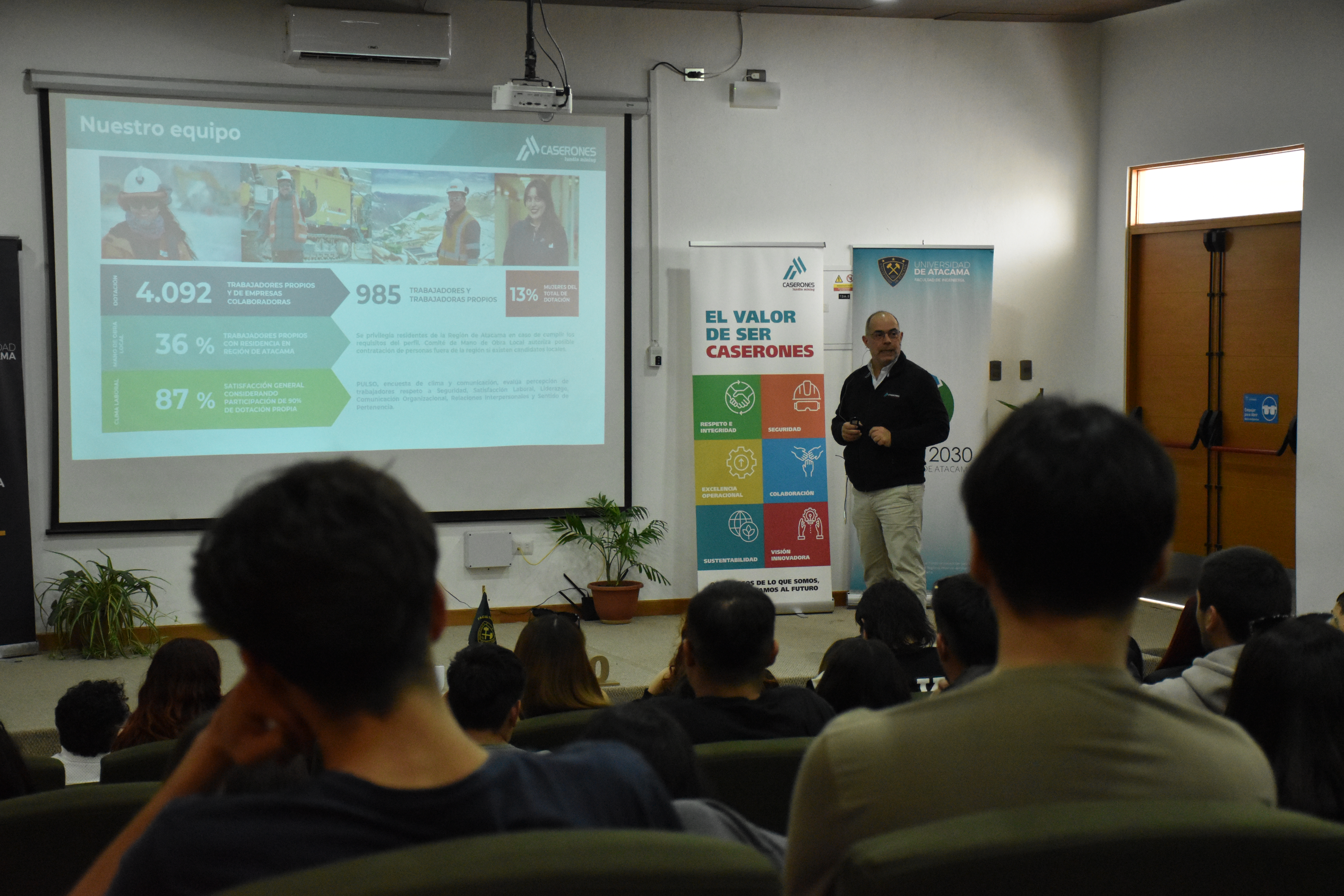 Este ciclo de charlas fue concebido como un espacio de encuentro académico e industrial, donde profesionales de la compañía compartieron sus experiencias y conocimientos técnicos. En esta ocasión, presentaron Julia Salas, Gerenta de Relaciones Comunitarias de Caserones Lundin Mining sobre sustentabilidad, y Claudio Raffo, Director de Recursos Humanos de Caserones Lundin Mining.