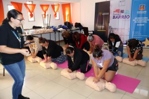 La actividad realizada en la sede de la Junta de Vecinos de la Población Juan Pablo II incluyó demostraciones prácticas, simulaciones y estaciones guiadas, donde las participantes aprendieron maniobras de RCP, reconocimiento de signos vitales y el uso correcto del desfibrilador externo automático (DEA). Este trabajo conjunto permitió fortalecer la cultura de autocuidado y preparar a la comunidad para responder ante posibles emergencias.
