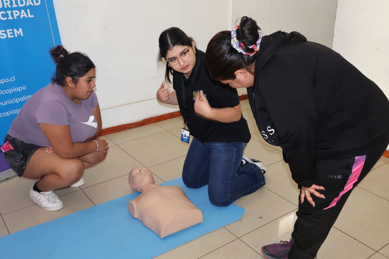 La actividad realizada en la sede de la Junta de Vecinos de la Población Juan Pablo II incluyó demostraciones prácticas, simulaciones y estaciones guiadas, donde las participantes aprendieron maniobras de RCP, reconocimiento de signos vitales y el uso correcto del desfibrilador externo automático (DEA). Este trabajo conjunto permitió fortalecer la cultura de autocuidado y preparar a la comunidad para responder ante posibles emergencias.