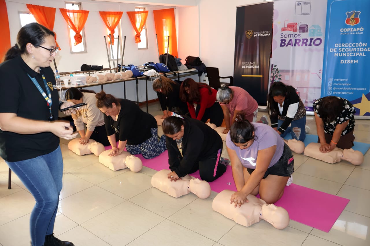 En el marco del trabajo colaborativo entre la Facultad de Medicina de la Universidad de Atacama y el Programa “Somos Barrios” de la Ilustre Municipalidad de Copiapó, se desarrolló un Taller de Reanimación Cardiopulmonar (RCP) Básico y Uso del Desfibrilador Externo Automático (DEA), instancia que marcó el cierre del proceso formativo de monitores vecinales en primeros auxilios de la Población Juan Pablo II.