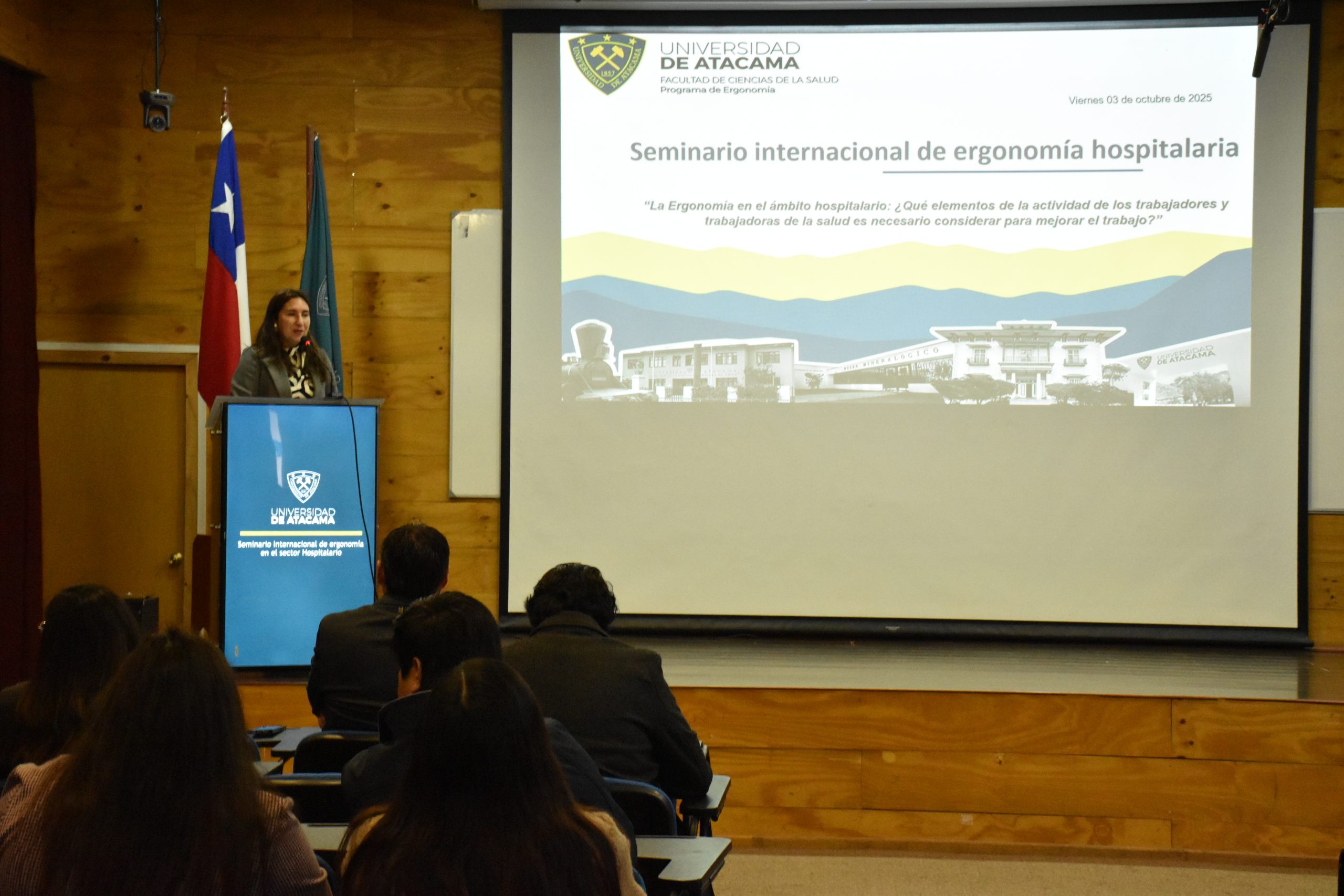 Con una amplia participación, destacados expositores nacionales y la exposición de una experta internacional, se realizó el seminario “La Ergonomía en el ámbito Hospitalario: ¿Qué elementos de la actividad de los trabajadores y trabajadoras de la salud es necesario considerar para mejorar el trabajo?”, organizado por el Programa de Ergonomía de nuestra Universidad de Atacama, bajo la coordinación de la profesora Pamela Astudillo Cornejo, académica del Departamento de Kinesiología de la Facultad de Ciencias de la Salud.