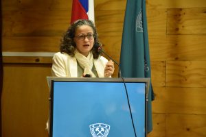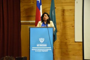 Una de las expositoras internacionales fue Isabelle Feillou, académica del Departamento de Relaciones Industriales de la Universidad Laval, Quebec, Canadá, y directora del Programa de Maestría en Ergonomía de la universidad canadiense. En su primera exposición, abordó el rol de las y los ergónomos en la red de salud en Quebec, destacando los desafíos de la profesión: la escasa representación en el sistema y la necesidad de difundir el potencial de la disciplina.